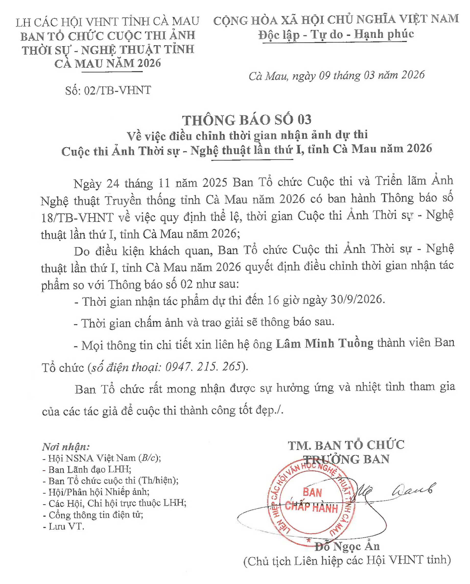 THÔNG BÁO SỐ 3 - V/V THAY ĐỔI THỜI GIAN NHẬN ẢNH